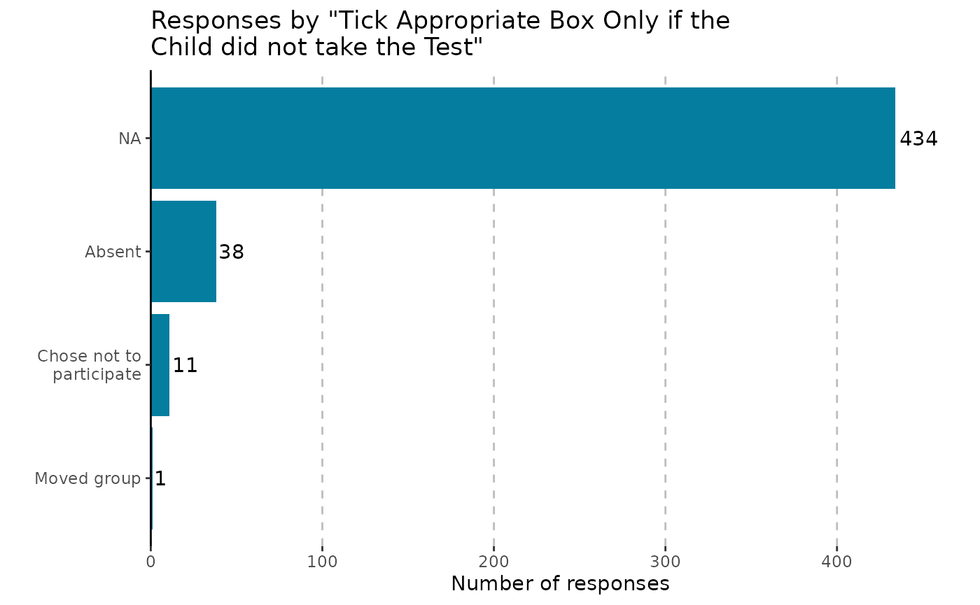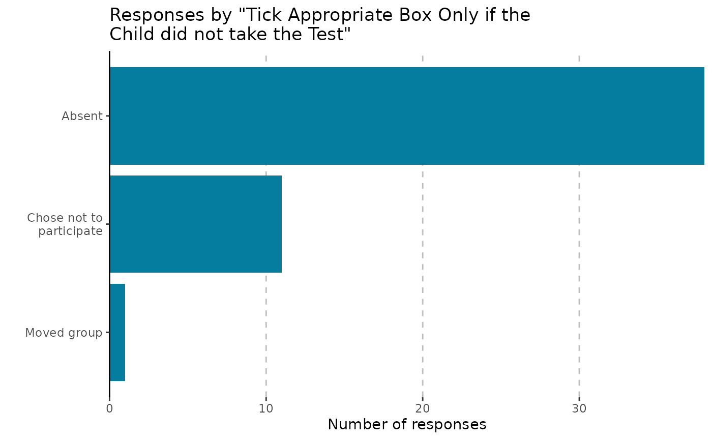 Note further a warning will be given if the answers to the questions do not align with the survey values. Where the unexpected answers will be set to NA (for ggplot).