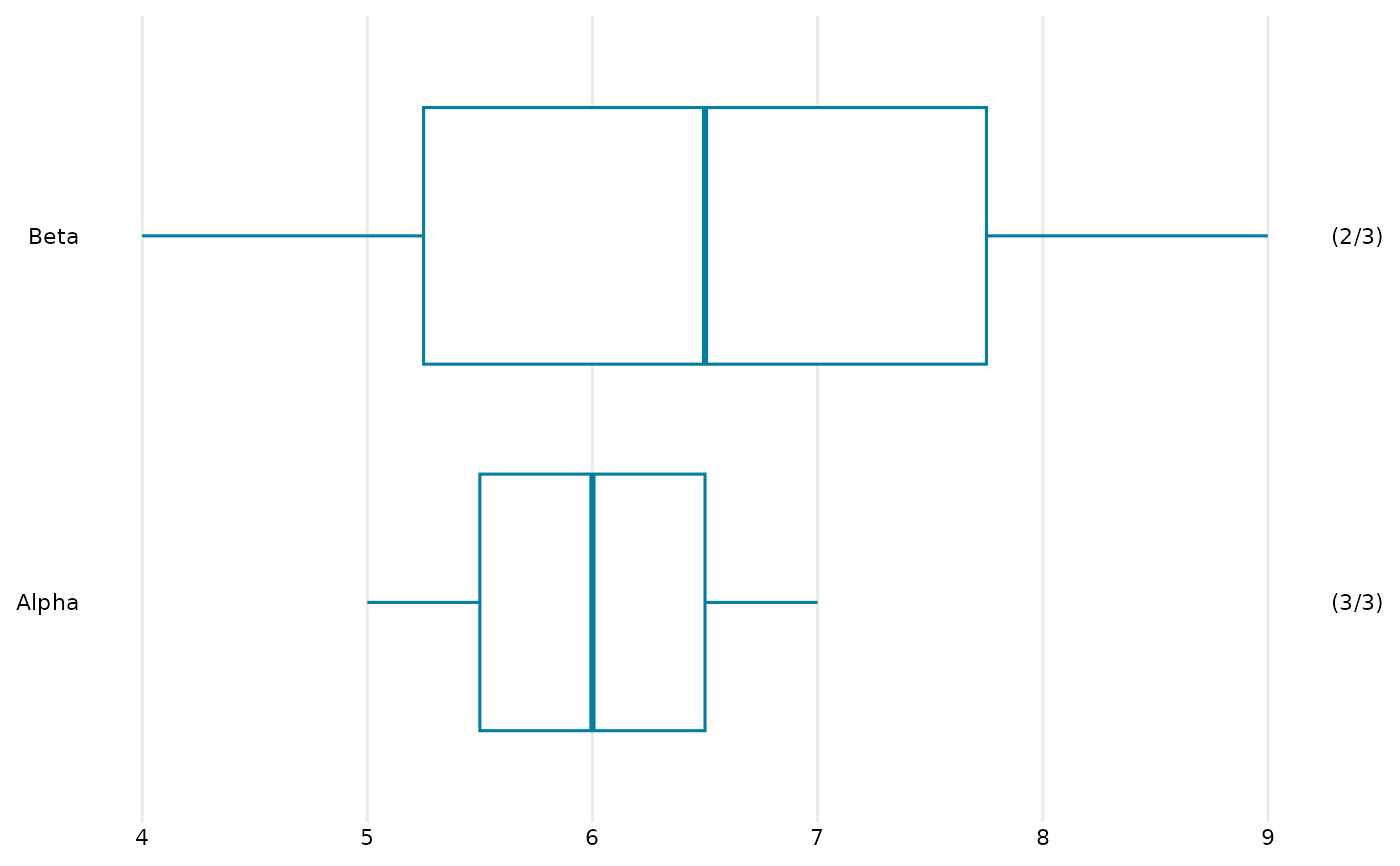 (n/m)style labels showing the number of non-NA responses per box,optional dashed line to visually separate some of the boxes.
